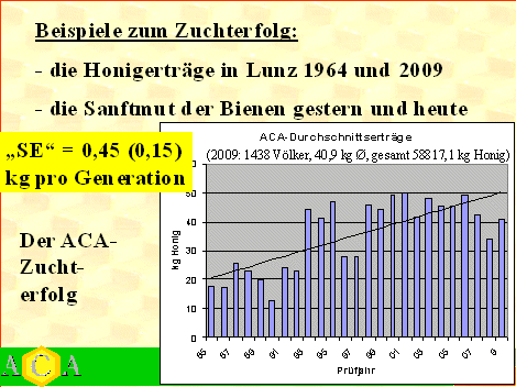 Im Leistungsprüfjahr 2010 erbrachten die 1258 Prüfvölker eine durchschnittliche Honigleistung von 51,6 kg. Das ist der bisher höchste Durchschnittsertrag, obwohl Tracht und Witterung (im Juni gab es viel 'Regen und wenige sehr gute Trachttage) nicht überall in Österreich optimal waren. Aber diese Durchschnittleistung wurde im Prüfjahr 2011 mit 57,8 kg deutlich übertroffen!