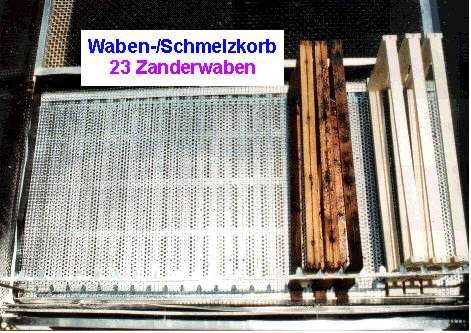 1. Senkrechte Aufstellung zur Sonneneinstrahlung je nach Tages- und Jahreszeit (Neigungswinkel). 2. Transparente Abdeckung aus Klarglas oder Isolierglas; kein milchig-weisses oder grünliches Fensterglas verwenden! 3. Metall-Absorber (Röhrenkollektor) mit hoher Wärmeleit- zahl wählen, möglichst oberflächenbehandelt (schwarz), damit die eingefangene Sonnenenergie in Wärme umgesetzt werden kann. 4. Kleiner Wärmeverlust (gute Isolation durch alukaschierte Mineralwolle; Stein- oder Glaswolle) 5. Direkte und diffuse Sonnenstrahlung , um das ganze Wärmespektrum ausnützen zu können (Wellenbereich). 6. Das gesamte Wabenmaterial einer Bienensaison arbeits- parend bei hohem Wirkungsgrad (Wachs-Ausbeute) einschmelzen zu können. Täglich nur eine Wabenbe- schickung mit 20 Zanderwaben ohne Drahtbruch. 7. Kein Nachdunkeln hellgelben Bienenwachses durch oxidierende Absorberplatten oder Wachsauffanggefäße. 8. Funktionsfähigkeit vom April bis September. |